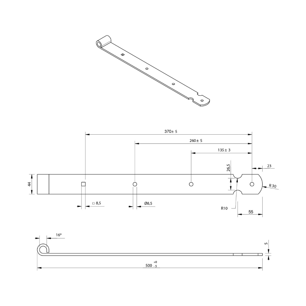 Deze duimheng is 50cm lang en geschikt voor middelgrote poorten en toegangshekken. Een rechte duimheng wordt gebruikt wanneer een stevige, symmetrische montage nodig is. Dit model is ideaal voor poorten en deuren die zonder uitsparing direct op hun plaats worden gemonteerd. De verzinkte afwerking biedt uitstekende corrosiebestendigheid en is ideaal voor buitengebruik.