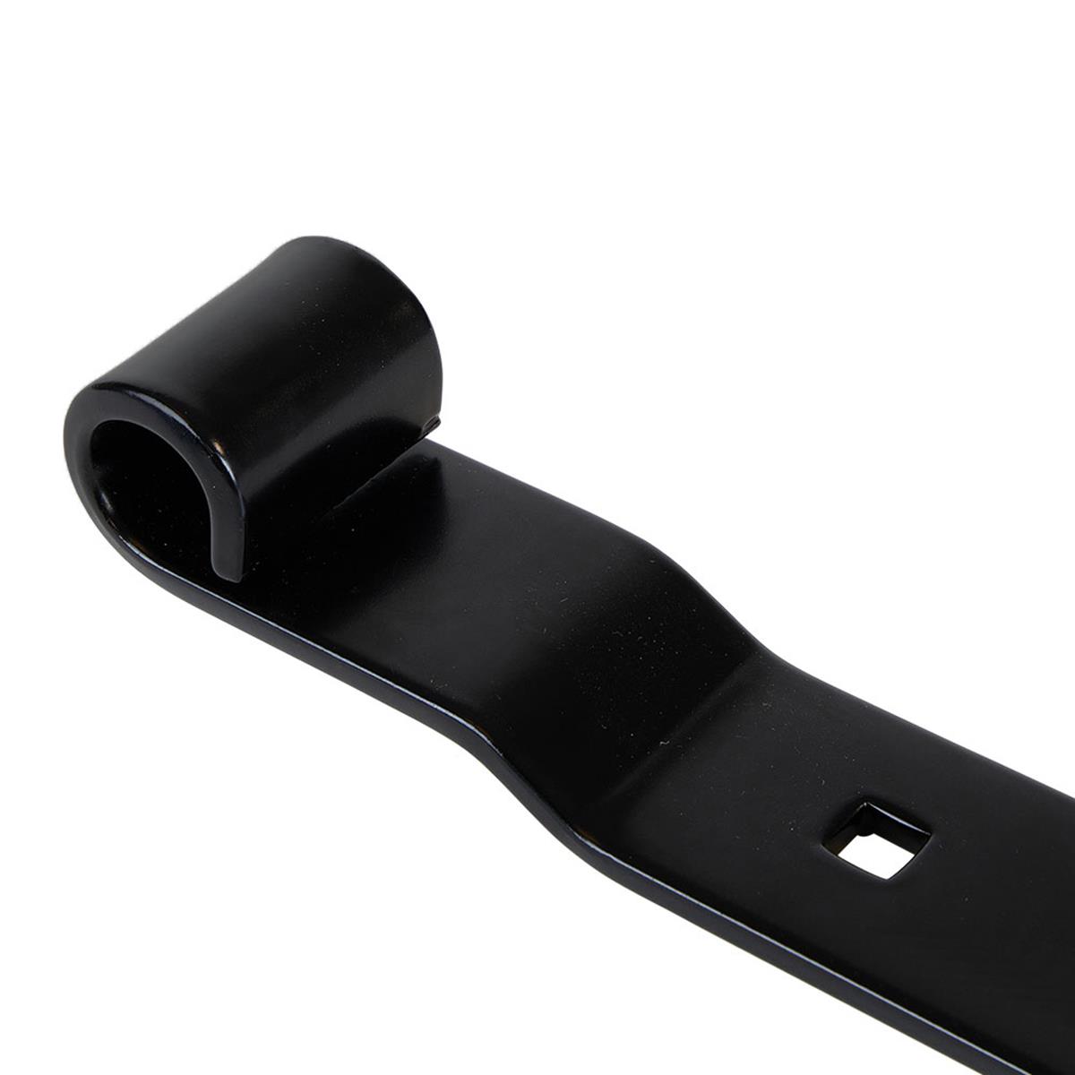 Deze duimheng is 80cm lang en geschikt voor zwaardere poorten en erfafscheidingen. Een duimheng met verzet wordt gebruikt wanneer de poort en het kozijn niet op dezelfde lijn liggen. Dit model zorgt ervoor dat de poort correct sluit zonder aanpassingen aan het houtwerk. De zwart gepoedercoate afwerking geeft een robuuste uitstraling en wordt vaak gebruikt in rustieke of traditionele omgevingen.