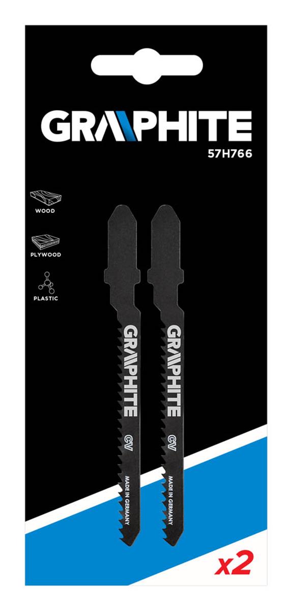 GRAPHITE Decoupeerzaagbladen voor Hout/kunststof Fijn 2 stuks. GRAPHITE decoupeerzaagbladen worden gebruikt voor semi-nauwkeurig zagen van hout en kunststof en multiplex. Dankzij de T-schacht kunnen de zaagbladen in alle decoupeerzagen met BOSCH-houder en universele houder worden gebruikt. Gebruik van CrV-staal (chroom-vanadium) geeft een hoge elasticiteit en weerstand tegen hoge temperaturen. Gepolijste zijvlakken van het mes verminderen wrijving en opwarming van het mes tijdens het snijden. Het zaagblad bevat 12 tanden per inch, de totale lengte is 75mm en de werklengte 50mm. Bladtype is fijn. Het blad heeft een extra dunnere schacht waardoor er makkelijker gewerkt kan worden in bochten, lastige plekken en fijn materiaal