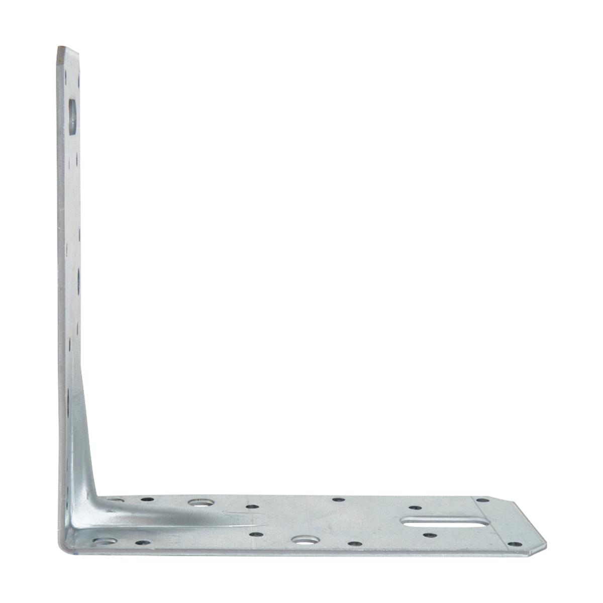 Groot verzinkt hoekanker van 150x150 mm met rilprofiel, geschikt voor zware belasting. De langere 150 x 150 mm variant is bestemd voor constructieve toepassingen en het verbinden van dikke houtpakketten waar maximale uittrekweerstand essentieel is.