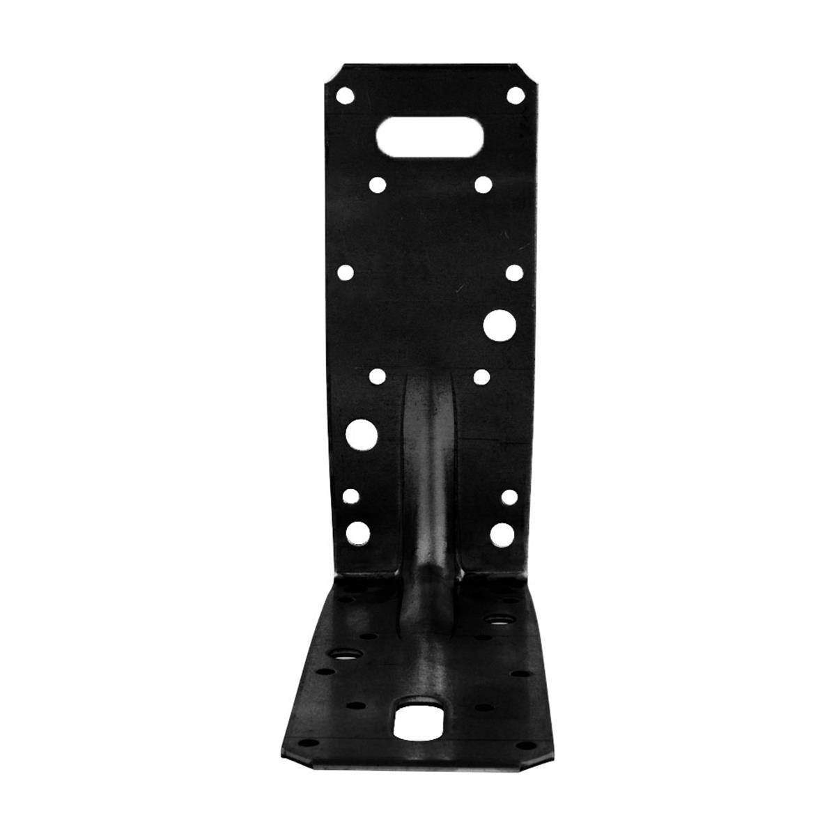 Zwart hoekanker van 150x150 mm met rilprofiel voor stijlvolle toepassingen. De langere 150 x 150 mm variant is bestemd voor constructieve toepassingen en het verbinden van dikke houtpakketten waar maximale uittrekweerstand essentieel is.