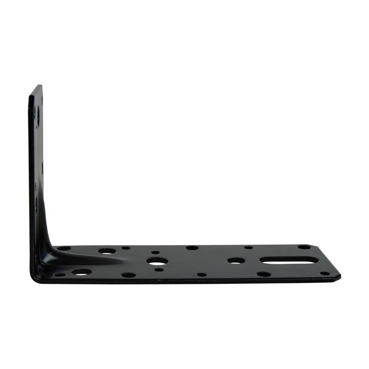 Zwart hoekanker van 150x90 mm met rilprofiel voor decoratieve en sterke verbindingen. De 150 x 90 mm uitvoering is geschikt voor zwaardere verbindingen en constructief houtwerk waar meer verankering in het materiaal vereist is.