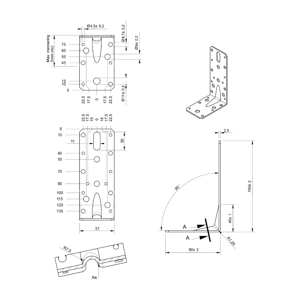 Lees meer Zwart hoekanker van 150x90 mm met rilprofiel voor decoratieve en sterke verbindingen. De 150 x 90 mm uitvoering is geschikt voor zwaardere verbindingen en constructief houtwerk wa…