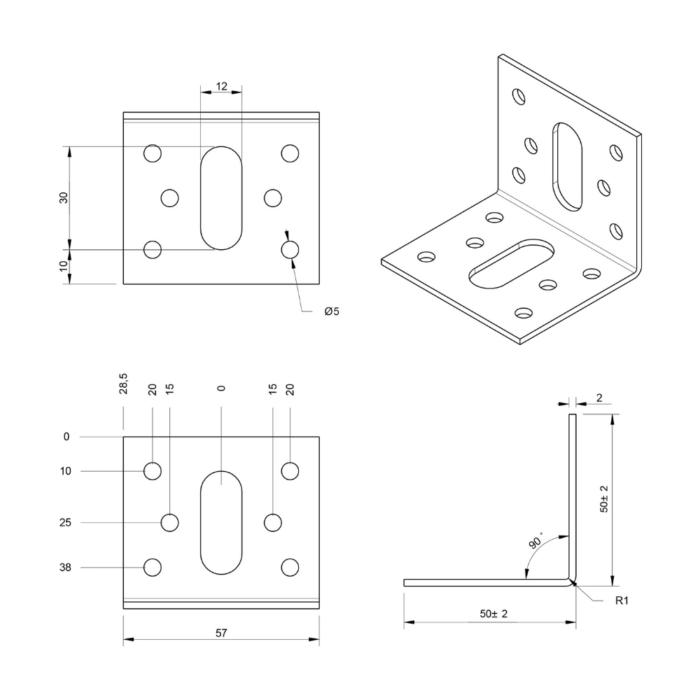 Compact verzinkt hoekanker van 50x50 mm, geschikt voor diverse toepassingen. Met 50 mm schroeflengte biedt deze schroef voldoende grip voor stevige verbindingen in hout, spaanplaat en andere plaatmaterialen.