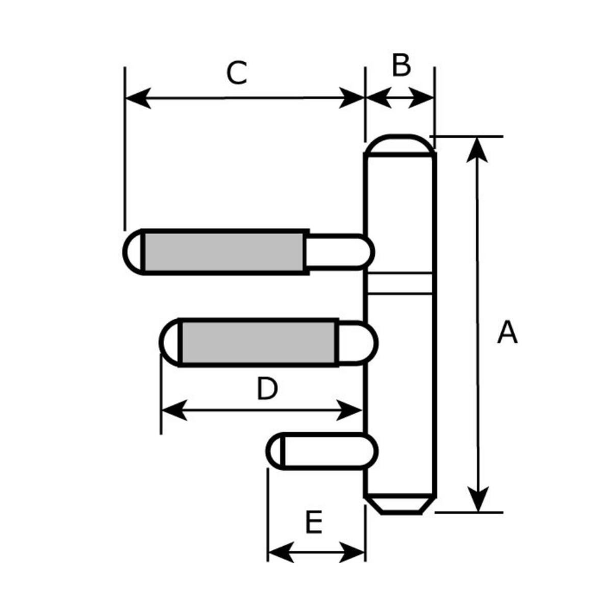 | Afmeting: | A = 75 mm, B = 14 mm, C = 50 mm, D = 43 mm en E = 20 mm. |