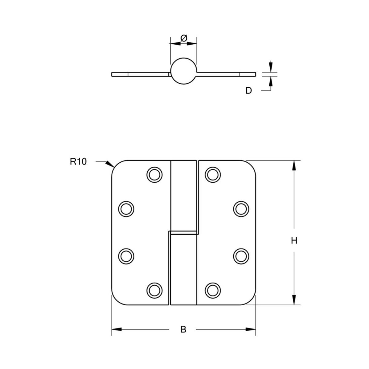 Dankzij de rechte hoeken sluit het scharnier mooi aan op rechthoekige kozijnen of deuren. Dit type wordt veel gebruikt in zowel interieurtoepassingen als buitendeuren, waar functionaliteit en uitstraling hand in hand gaan.