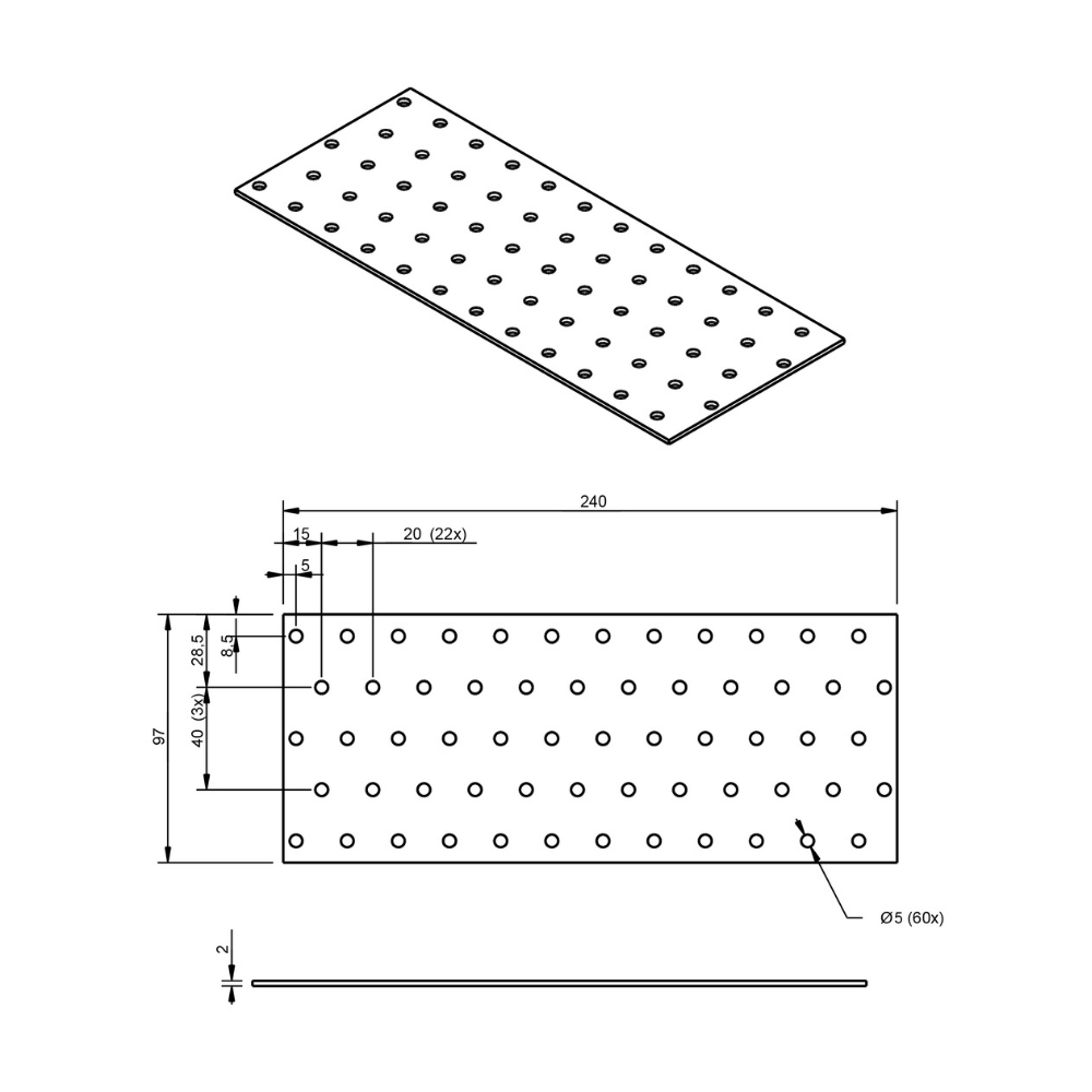 Koppelplaat - 100 x 240 x 2 mm - Verzinkt