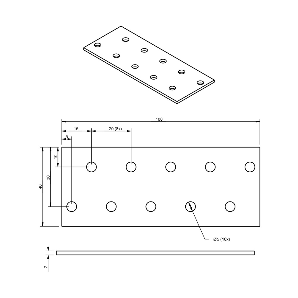 Lees meer Compacte verzinkte plaat van 40x100 mm, ideaal voor kleine verbindingen. De 40 x 100 mm uitvoering is geschikt voor zwaardere verbindingen en constructief houtwerk waar meer veran…