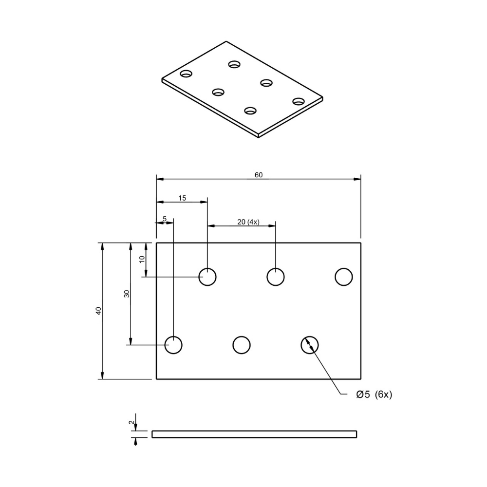 Koppelplaat - 40 x 60 x 2 mm - Verzinkt
