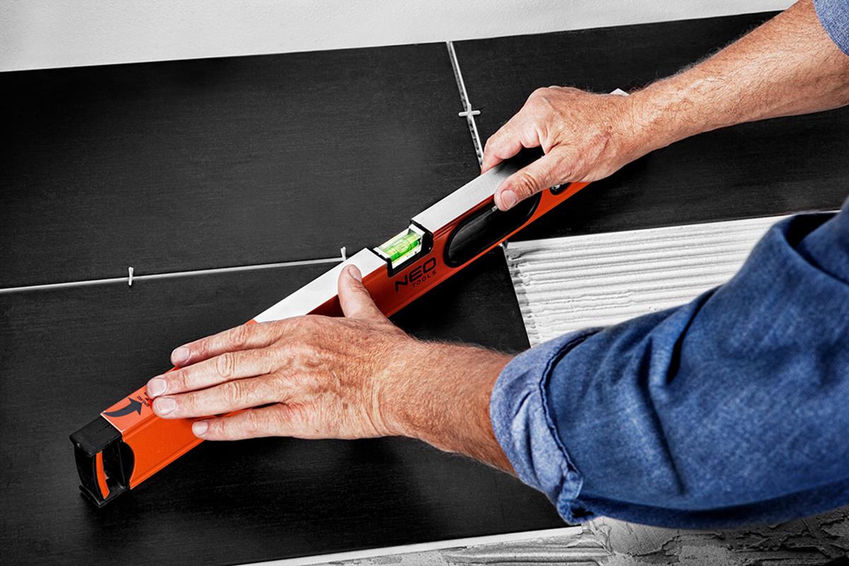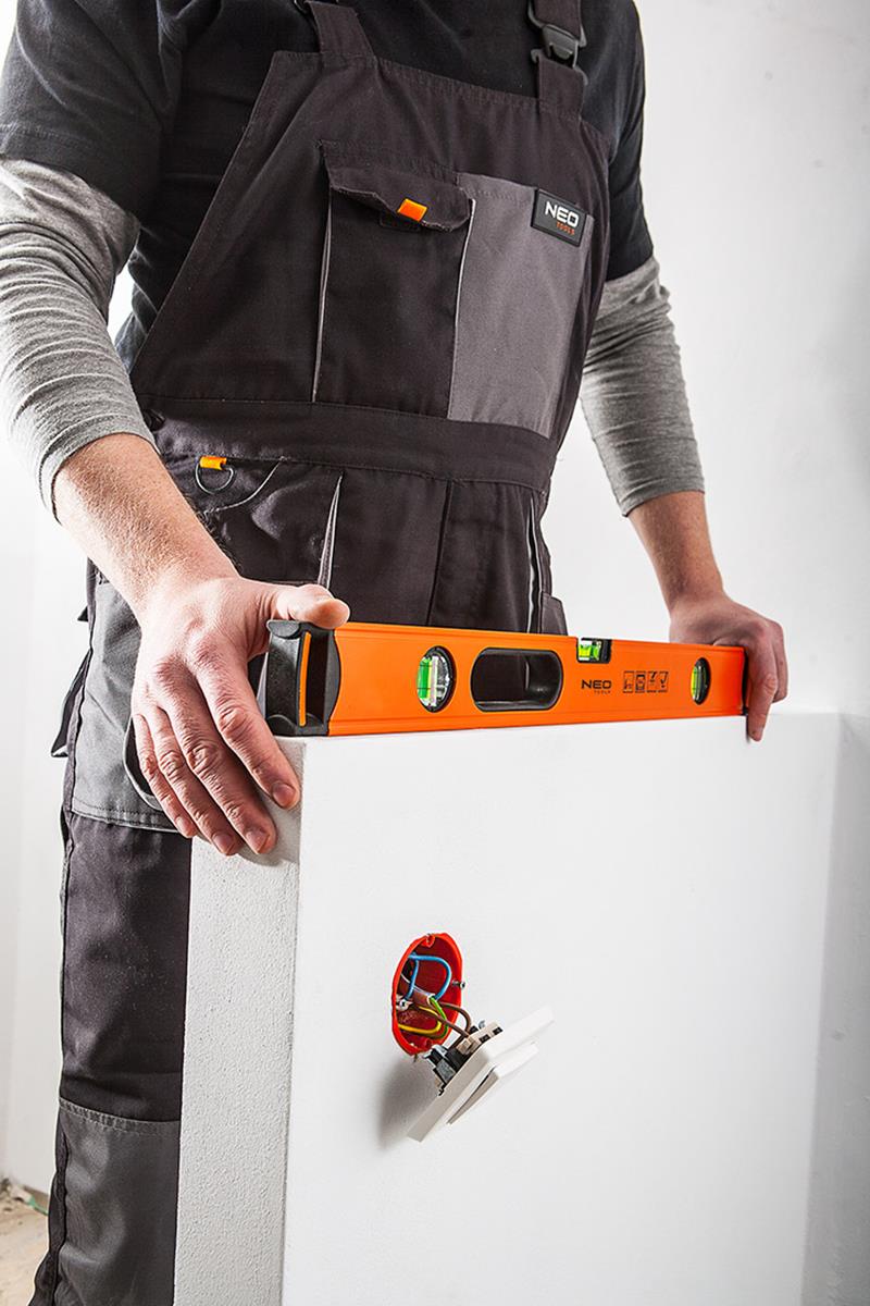 NEO Waterpas Heavy Duty 60 cm. Deze waterpas is voorzien van 1 handvat en niveaubellen van slagvast materiaal.