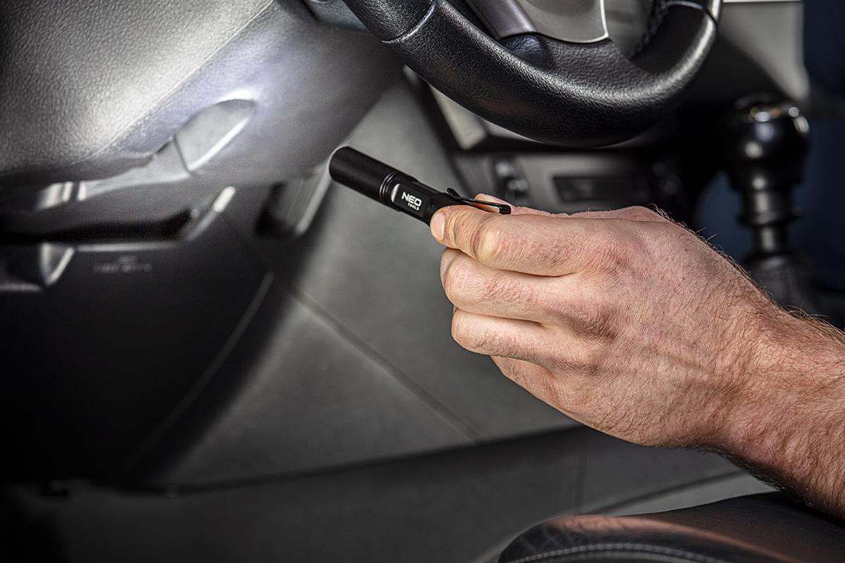 NEO inspectie zaklamp met aluminium body. Deze zaklamp is uitgevoerd met 200 lumen LED straler. 2 x AA batterij benodigd, niet meegeleverd.