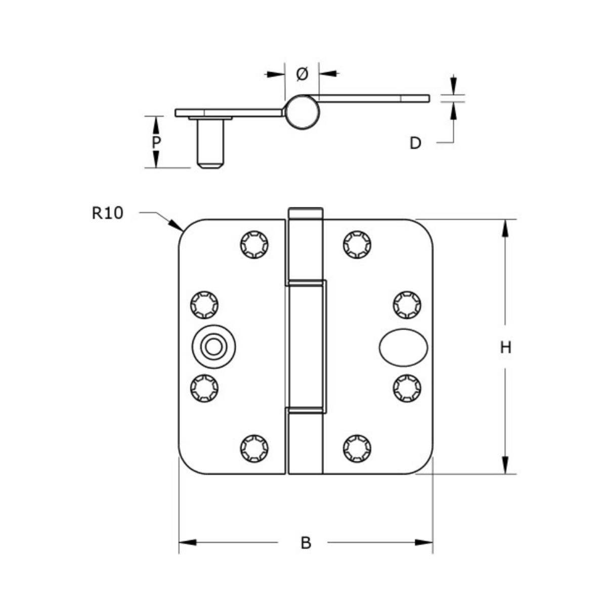 Het scharnier is gemaakt van sterk staal en is verzinkt voor een effectieve bescherming tegen corrosie. Deze afwerking zorgt voor een neutrale, industriële uitstraling die goed past bij uiteenlopende toepassingen.