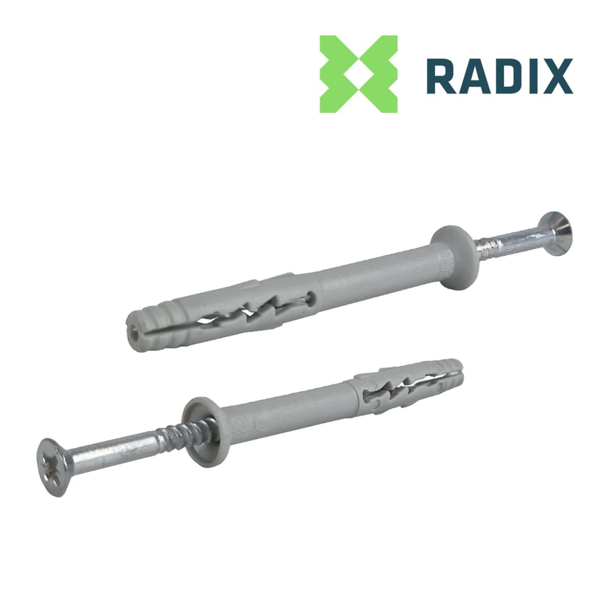 Lees meer Radix FX Pro biedt een pakket van 100 verzonken kop spijkerpluggen/impactpluggen, met een afmeting van 6 x 55/25mm. Deze zijn ontworpen voor veilige bevestiging in verschillende b…