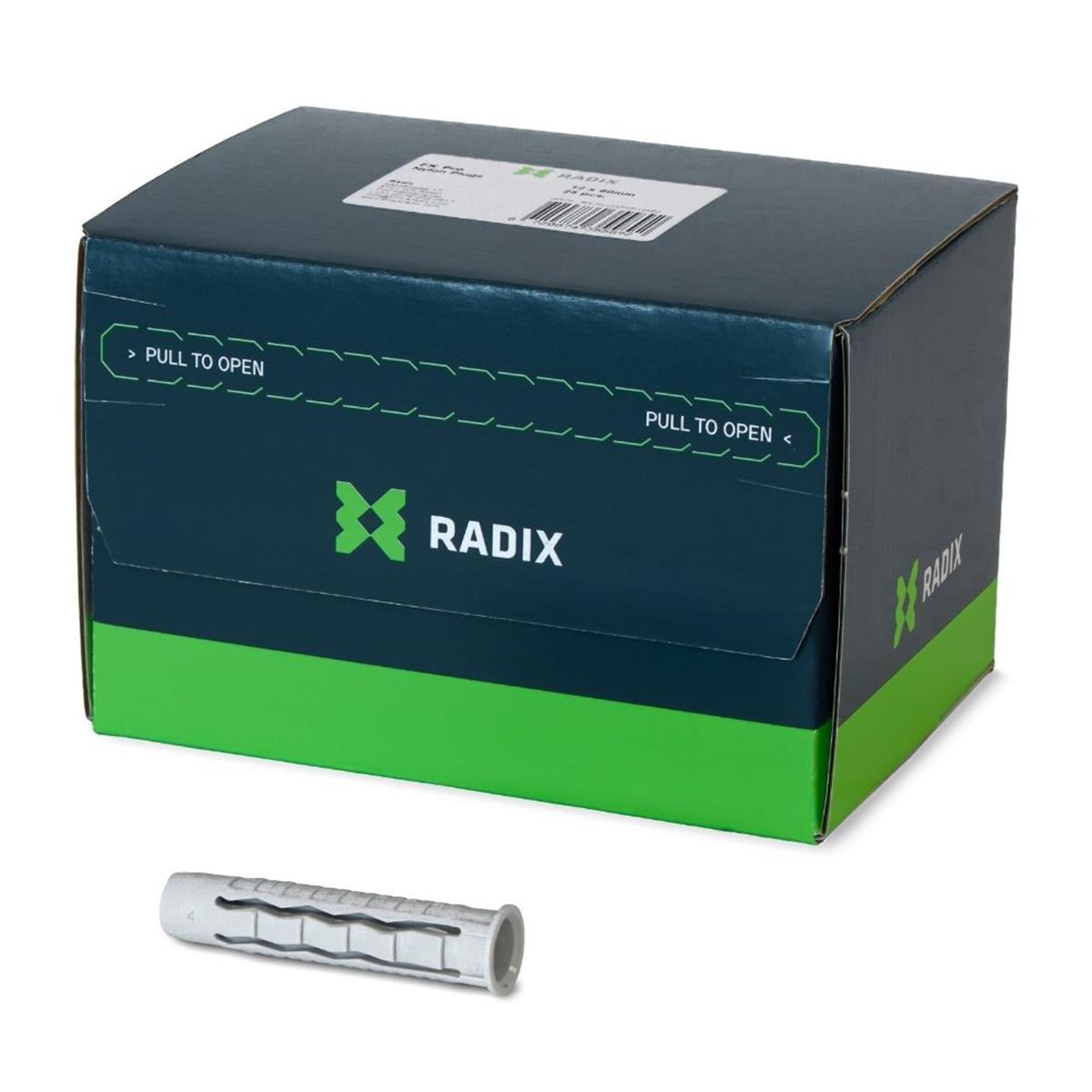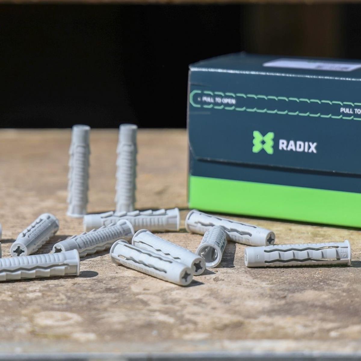 Lees meer Radix FX Pro Nylon Pluggen zijn duurzame nylon pluggen van 12 x 60 mm, verkrijgbaar in een verpakking van 25 stuks. Deze pluggen zijn ontworpen voor veilige en betrouwbare bevesti…