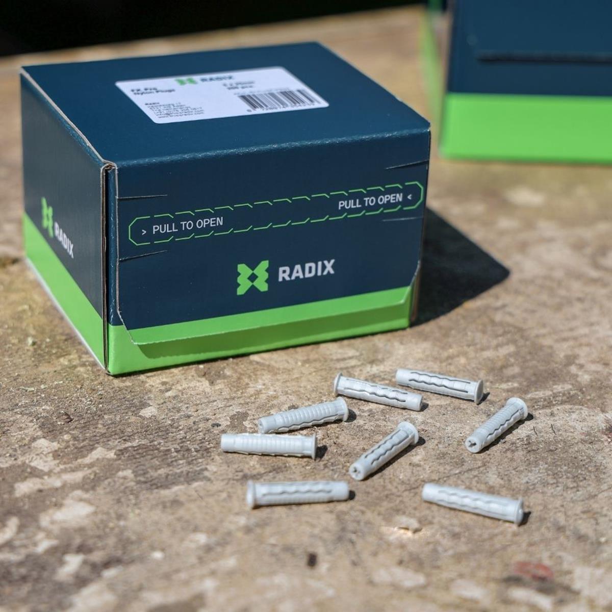 Radix FX Pro Nylon Pluggen zijn duurzame bevestigingsmiddelen van 5 x 25 mm, verkrijgbaar in een verpakking van 200 stuks. Deze hoogwaardige nylon pluggen zijn ontworpen voor veilige en betrouwbare verankering in verschillende materialen, waardoor ze ideaal zijn voor bouw- en doe-het-zelfprojecten die sterke en stabiele verbindingen vereisen.