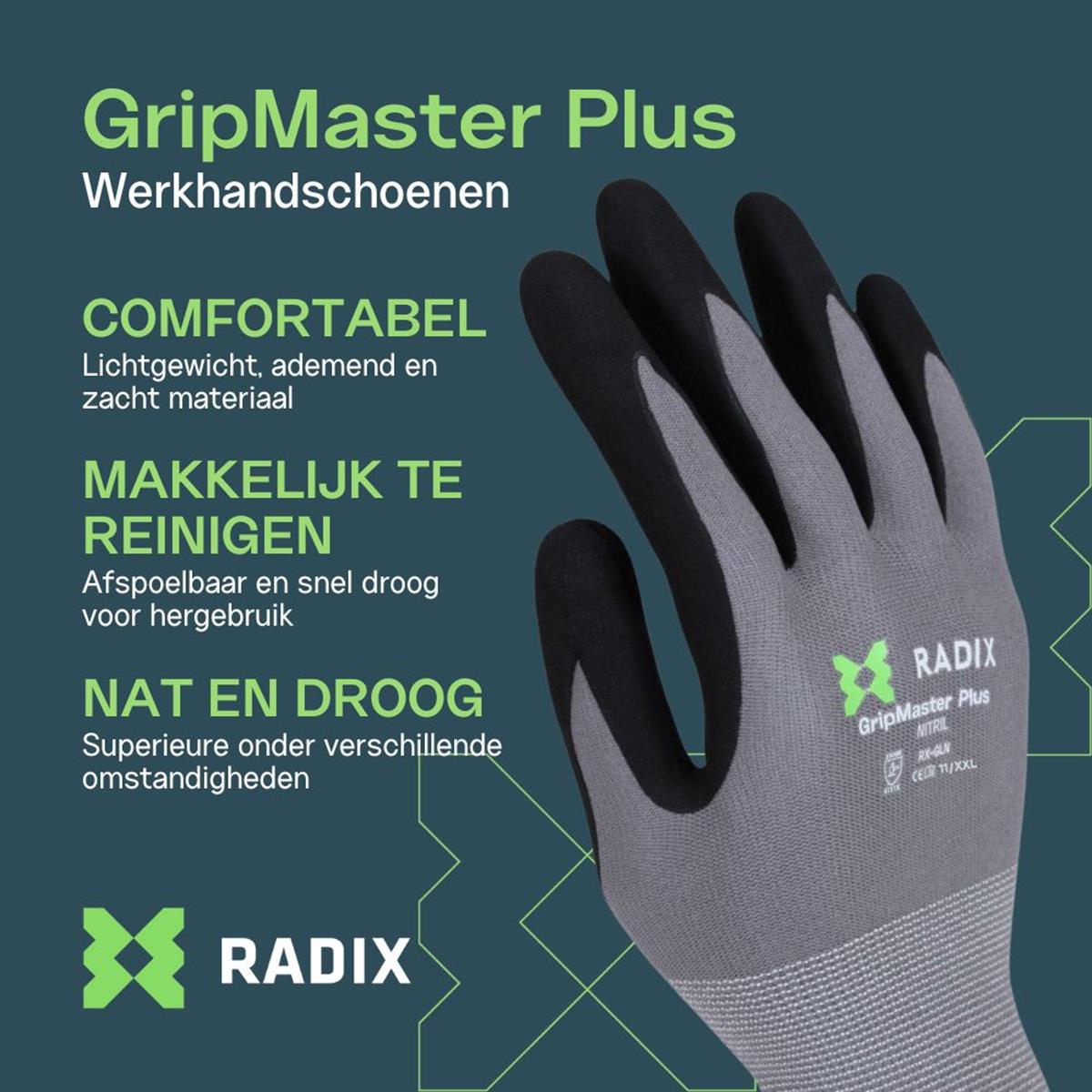 Radix GripMaster Plus - Werkhandschoenen - Nitril Micro Foam - Black/Grey - M11 / XL