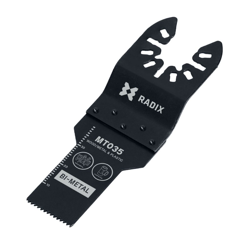 Het Radix - Multitool zaagblad - Bi-metaal - 18 tanden (1.4mm) - Gefreesd - 40x20mm (20mm breed, 40mm zaagdiepte) is ontworpen voor zagen met maximale precisie en duurzaamheid. Het blad is gemaakt van bi-metaal, waardoor het extreem slijtvast is en ideaal voor hout, non-ferro metalen én hout met spijkers. Met zijn 18.0 TPI (Normal) levert dit zaagblad een optimale balans tussen snelheid en nauwkeurigheid. De Universal - open aansluiting garandeert een perfecte krachtoverdracht en snelle wissel. De compacte 40 x 20 mm maat is geschikt voor fijne montagewerkzaamheden, het bevestigen van beslag, scharnieren en dunne materialen. Voordelen: ✔️ Het blad is gemaakt van bi-metaal, waardoor het extreem slijtvast is en ideaal voor hout, non-ferro metalen én hout met spijkers. ✔️ De Universal - open aansluiting garandeert een perfecte krachtoverdracht en snelle wissel. ✔️ Geschikt voor zagen in diverse materialen Compatibel met: AEG, BLACK & DECKER, BOSCH met OIS, DEWALT, DREMEL, EINHELL ,FEIN met MultiMount ,FEIN met SuperCut ,FERM ,FESTOOL ,HITACHI/HIKOKI ,MAKITA ,METABO ,MILWAUKEE ,PARKSIDE ,RYOBI ,SKILL ,STANLEY ,WORX ,WÜRTH.