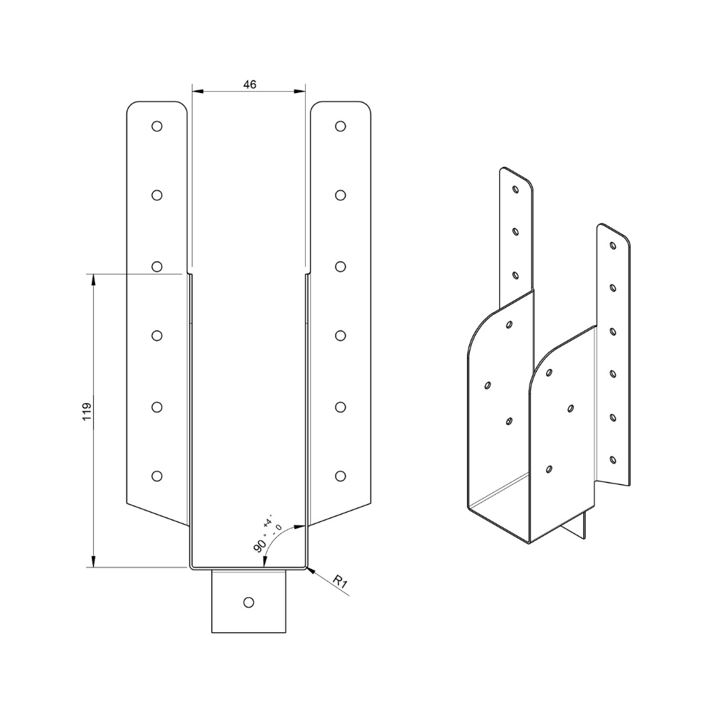 Raveeldrager met strip van 190x46 mm voor specifieke toepassingen. De langere 46 x 117 mm variant is bestemd voor constructieve toepassingen en het verbinden van dikke houtpakketten waar maximale uittrekweerstand essentieel is.