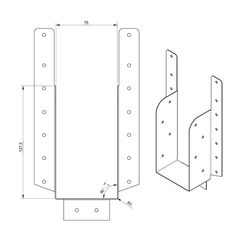 Extra brede raveeldrager met strip van 225x75 mm, ideaal voor zware projecten. De langere 75 x 137 mm variant is bestemd voor constructieve toepassingen en het verbinden van dikke houtpakketten waar maximale uittrekweerstand essentieel is.