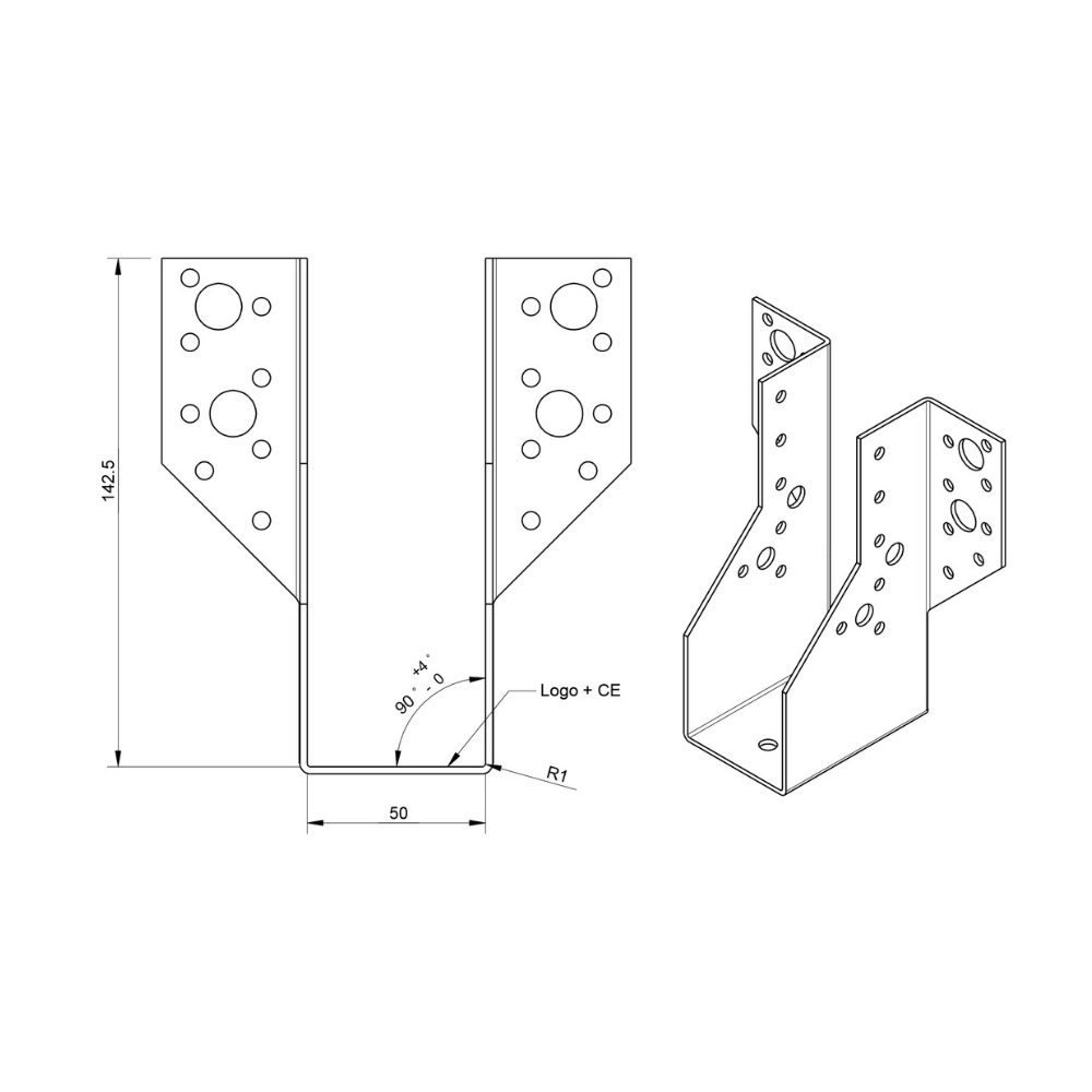 Raveeldrager van 335x50 mm voor lichte constructies. De langere 50 x 143 mm variant is bestemd voor constructieve toepassingen en het verbinden van dikke houtpakketten waar maximale uittrekweerstand essentieel is.