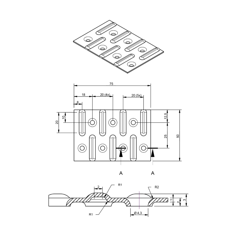 Spijkerplaat - 75 x 50 x 1.00 mm - Verzinkt
