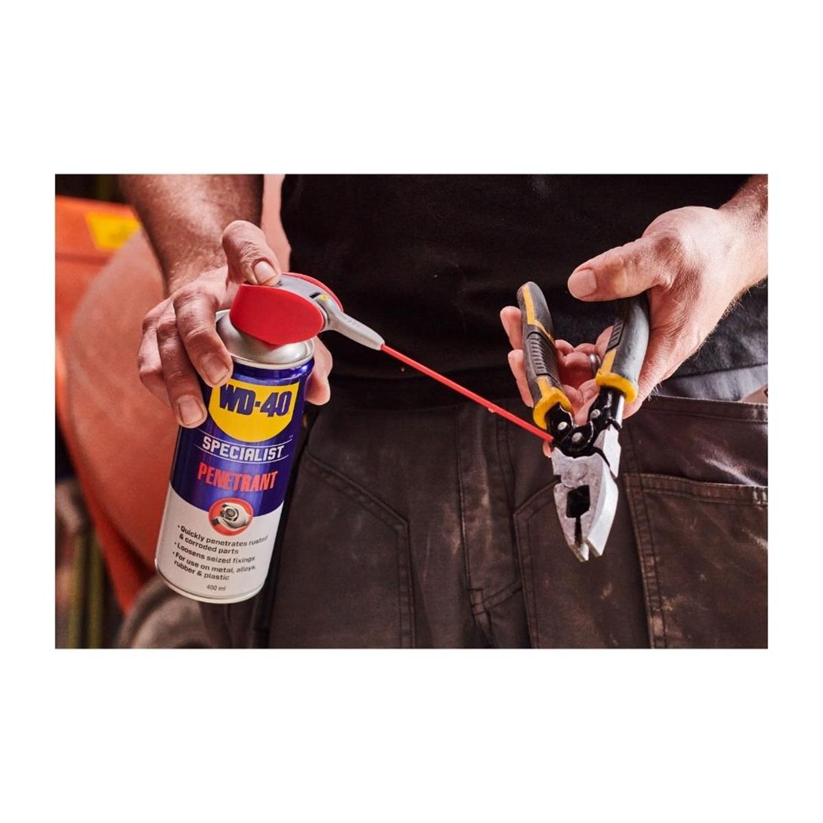 WD-40 Specialist Superkruipolie is dé oplossing voor vastgeroeste of vastzittende onderdelen. De krachtige formule dringt snel door roest en corrosie en maakt zelfs zwaar vastzittende verbindingen los.